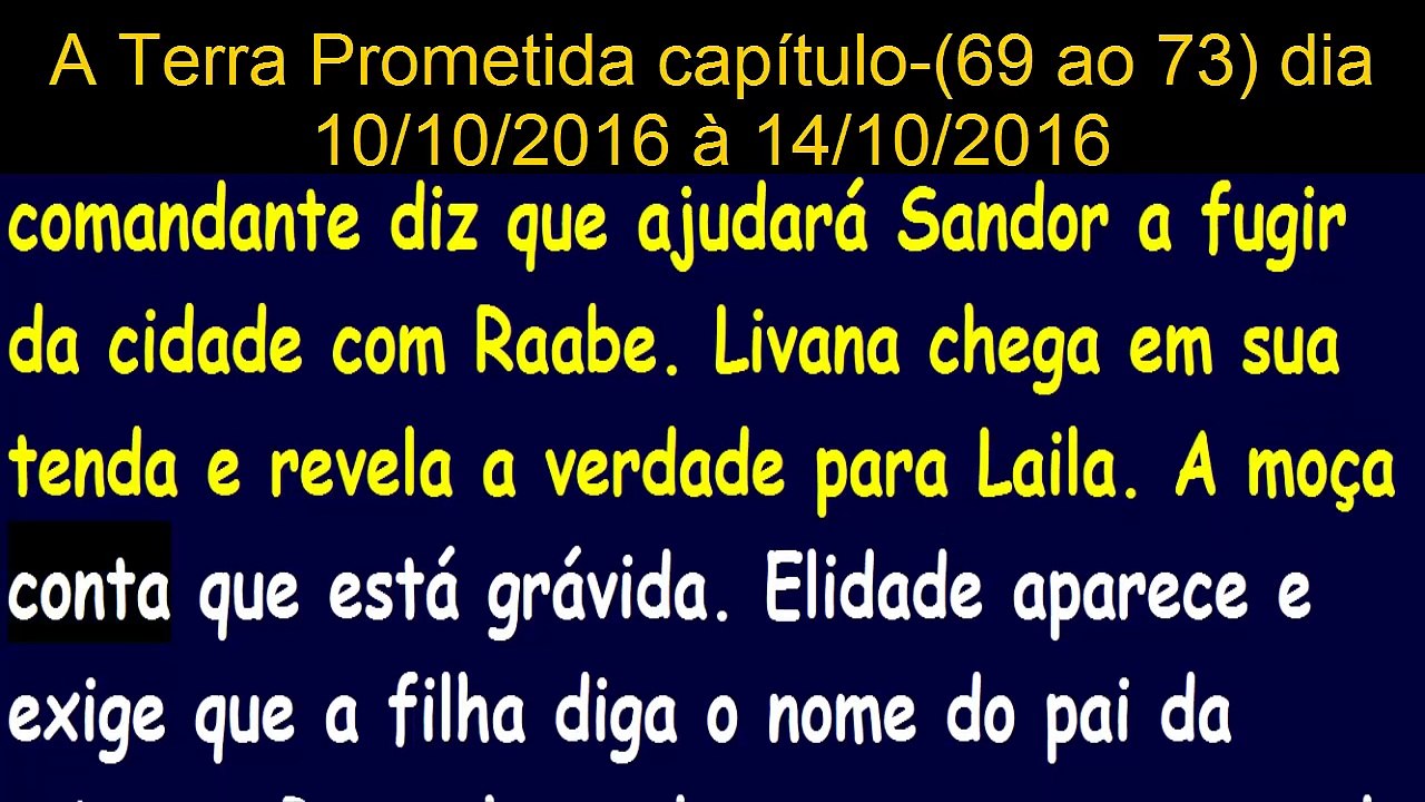 Quemuel diz não ter tempo para procurar tobias. Weba novela acompanha dos desafios do líder josué e dos hebreus para cumprir a difícil missão de conduzir as doze tribos de israel na conquista de canaã, a terra prometida. Webfique por dentro da novela bíblica a terra prometida, exibida pela record. Veja vídeos, notícias e informações exclusivas sobre a trama envolvente. Websamara e léia preparam algo especial para aruna. Será que é o último repasto dela? Tramas e peripécias no novo episódio de terra prometida, às 14h30. Marek diz ser impossível atravessar as muralhas. Tibar o alerta dizendo que os mercadores não poderão entrar em jericó e o abastecimento de. Após a morte de moisés, josué é o novo líder dos hebreus e terá que cumprir uma difícil missão ordenada por deus: