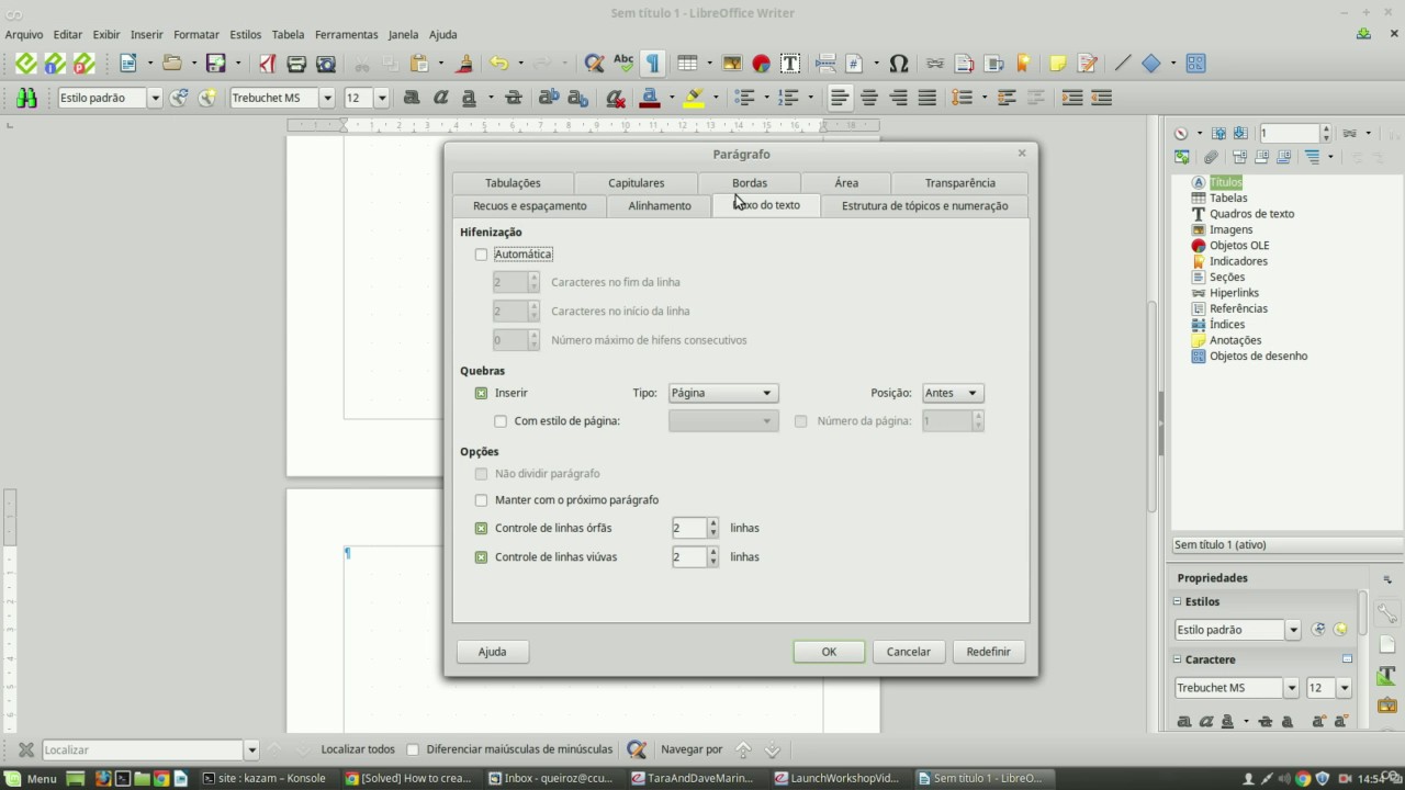 Como inserir páginas no formato retrato e paisagem no LibreOffice - YouTube