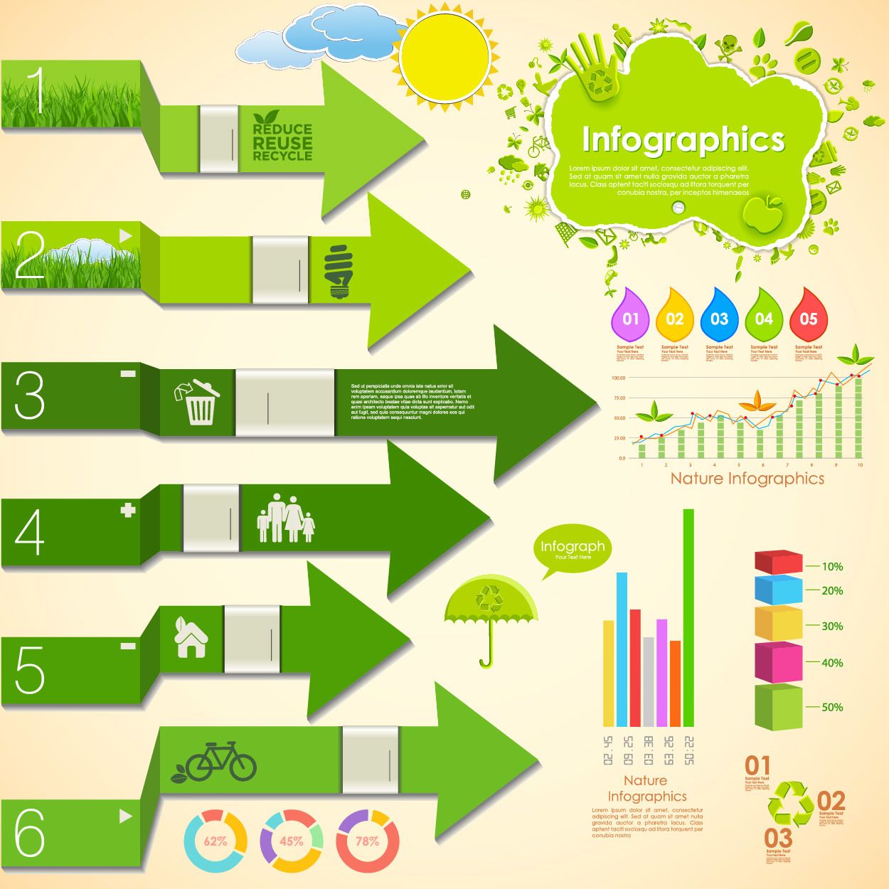 Pack de infografías ecología verde - Descargar vector