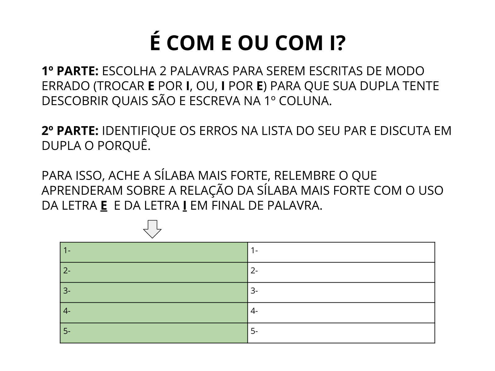 Palavras terminadas em E/I - 3° ano.