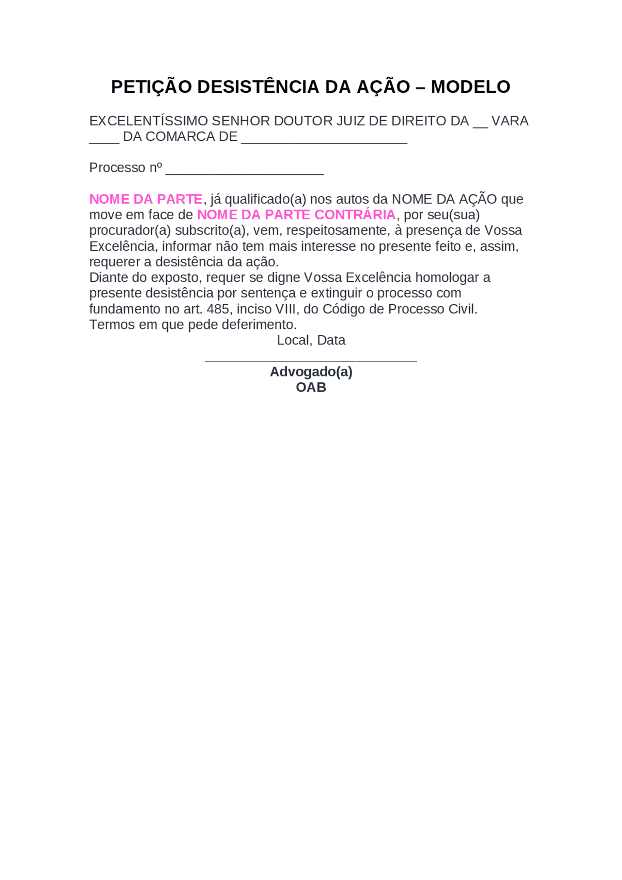 Desistencia DA ACAO Antes DA Citacao - MODELO DE PETIÇÃO PROCESSO CIVIL