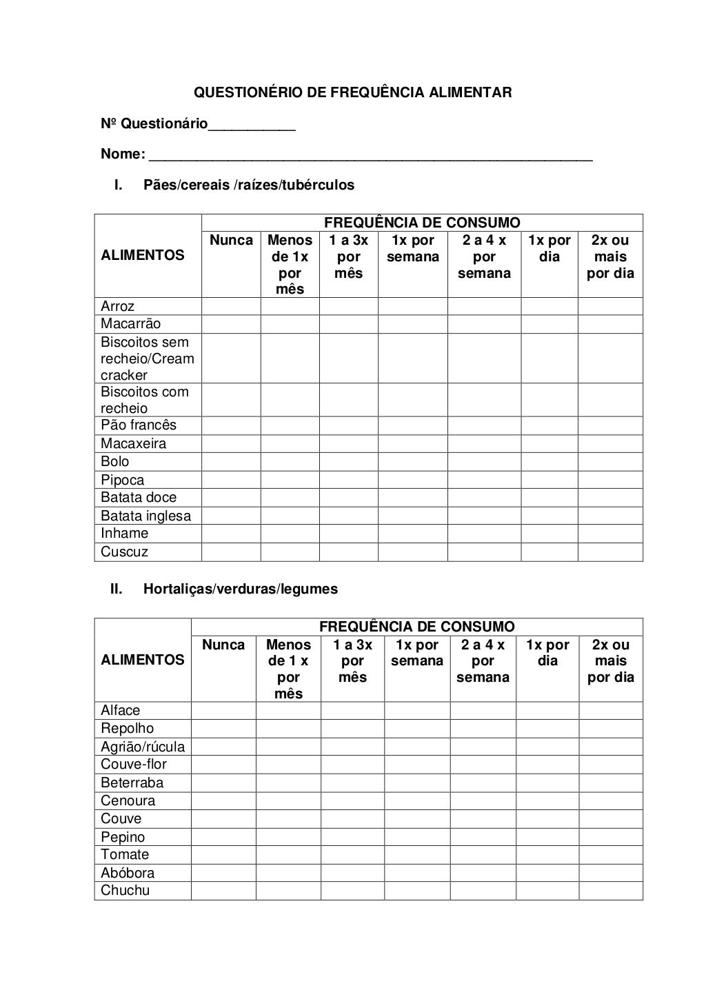 Questionário De Frequência Alimentar