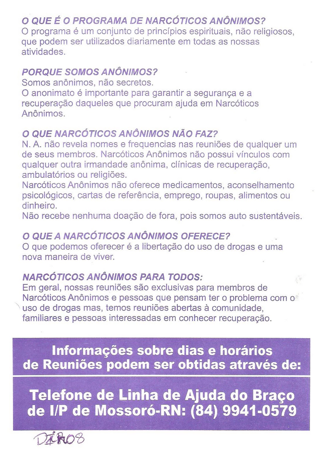 Webnarcóticos anônimos ou na é uma irmandade ou sociedade sem fins lucrativos, de homens e mulheres para quem as drogas se tornaram um problema maior. Webreuniões online narcóticos anónimos. Por favor respeitem o. Webo que é narcóticos anônimos? Narcóticos anônimos foi fundado em 1953 e muitas vezes é simplesmente chamado de na.