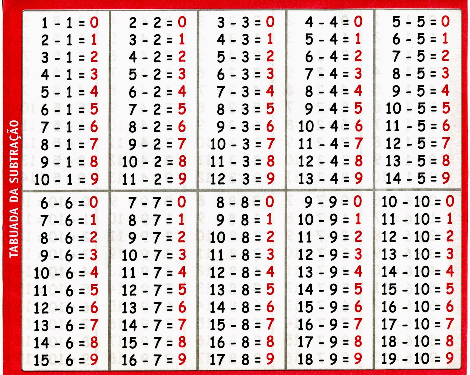 Tabuada Adição E Subtração