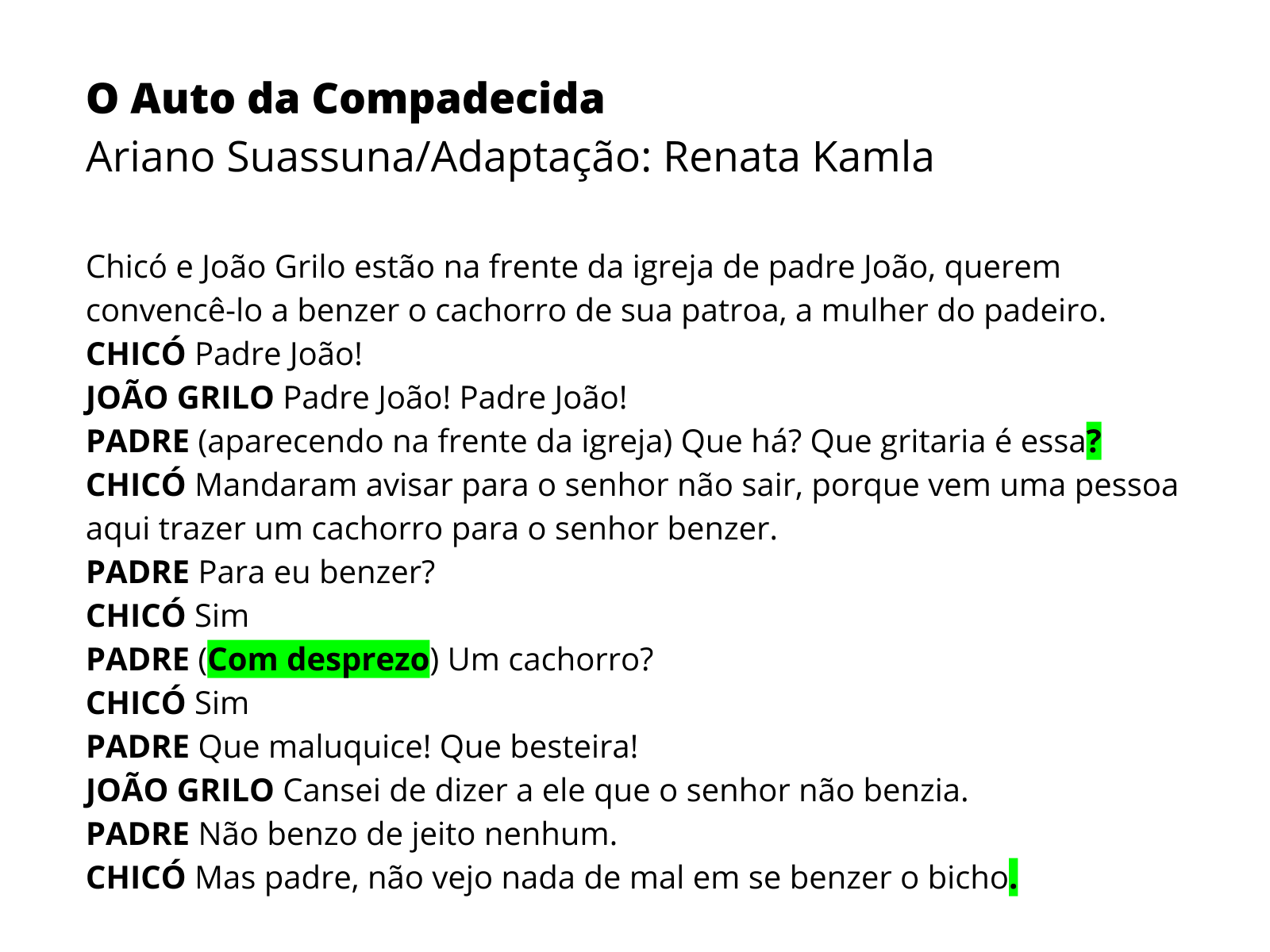 TEXTO TEATRAL OU TEXTO DRAMÁTICO rubrica no texto teatral.